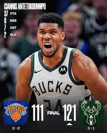 Sfida ad alta quota nella Eastern Conference, con Milwaukee che prende l’abbrivio decisivo nella seconda metà di gara e quindi mette al sicuro il risultato nel 4° quarto. Un 4° quarto in cui invece New York deve fare i conti con un problema fisico che prima toglie dalla partita e poi limita Jalen Brunson, fin lì assoluto protagonista con 36 punti. Il trascinatore dei Bucks, per contro, è ancora una volta un Giannis Antetokounmpo a livelli da MVP e assoluto dominatore con 37 punti, 8 rimbalzi, 7 assist, 16/22 al tiro e i canestri che decidono tutto nell’ultimo parziale di gioco