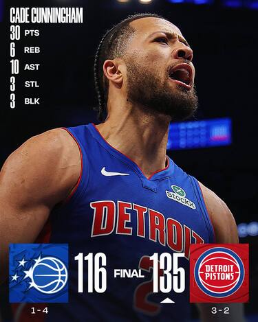 A Detroit, i Magic si illudono con una partenza promettente grazie ai soliti Paolo Banchero (24 punti) e Franz Wagner(22), ma sono i Pistons a mettere le mani sulla partita a cavallo dell’intervallo lungo e a imporre il loro stile di gioco sulle spalle di un Cade Cunningham da 30 punti e 10 assist e dai 23 dell’ex di serata Tobias Harris