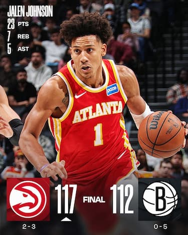 La buona notizia, per Atlanta, è che a Brooklyn arriva la vittoria attesa, quella meno buona è che Trae Young abbandona la partita già nel 1° quarto per un infortunio al ginocchio destro la cui entità rimane da valutare. Gli Hawks, seppure con qualche sbandamento di troppo nel secondo tempo, vincono trascinati dai 23 punti di Jalen Johnson, mentre i Nets si consolano con la prova da 32 punti e 9 rimbalzi di Michael Porter Jr.