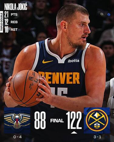 C’è poco da fare per i Pelicans, che a Denver reggono un tempo ma vengono travolti nel 3° quarto, in cui gli ospiti riescono a segnare solo 11 punti totali. La bella prova del rookie Jeremiah Fears (21 punti e 6 assist) non basta a New Orleans, perché dall’altra parte Nikola Jokic fa registrare la consueta tripla doppia (21 punti, 12 rimbalzi e 10 assist) e conduce i Nuggets a una vittoria netta e convincente