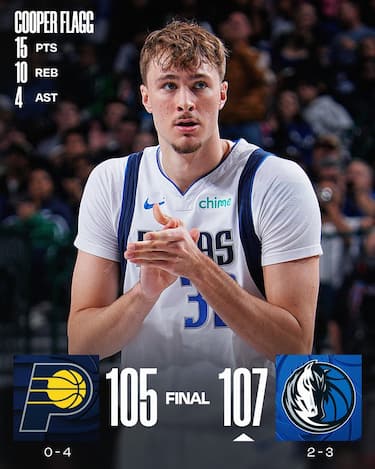 A proposito di panchine, quella di Dallas fa addirittura meglio di quella dei Bulls, con 64 punti sui 107 segnati dalla squadra e Brandon Williams (20 punti) e Dwight Powell (16) riescono a riempire il vuoto lasciato da Anthony Davis, che abbandona la gara già nel 1° quarto per un problema muscolare. I Pacers ci provano con Pascal Siakam (27 punti e 13 rimbalzi), ma la tripla della possibile vittoria, persa da Aaron Nesmith, non va