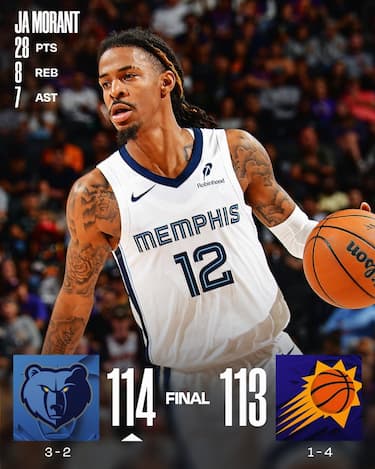 A Phoenix, Devin Booker (32 punti) prova a imitare Reaves, ma la tripla che potrebbe dare la vittoria ai Suns a fil di sirena non va e Memphis, che sul possesso precedente era tornata in vantaggio grazie al canestro di un Ja Morant in buona serata con 28 punti e 7 assist, porta a casa un successo in trasferta arrivato al termine di una partita in cui le due squadre si sono alternate alla conduzione tra continui sorpassi e controsorpassi