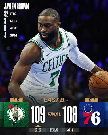 A Philadelphia, i Celtics dominano a lungo, andando avanti anche di oltre 20 punti grazie all’ottima serata di Jaylen Brown (32 punti) e di un Anfernee Simons autore di 19 punti in uscita dalla panchina, mentre i Sixers si svegliano tardi e riescono solo a sfiorare la rimonta perché prima Tyrese Maxey (26 punti e 14 assist) e poi Joel Embiid (20 punti e 6 rimbalzi) falliscono il canestro del possibile sorpasso negli ultimi due possessi della partita
