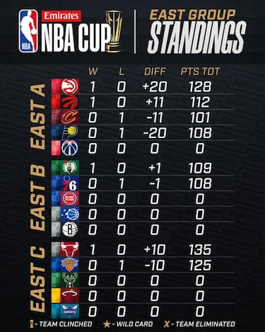LA CLASSIFICA DELLA NBA CUP A EST
