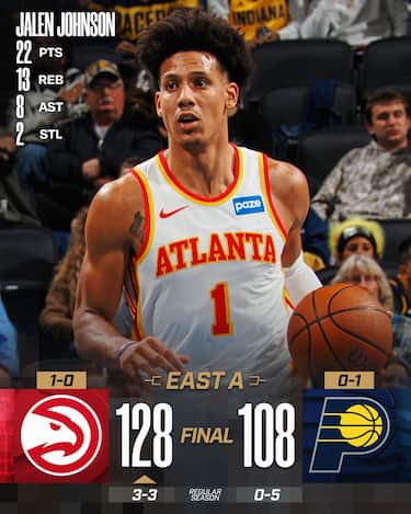 Senza la loro stella Trae Young, sostituita in quintetto da Nickeil Alexander-Walker (21 punti), gli Hawks giocano un 3° quarto di grande intensità, in cui staccano i Pacers e sulle spalle di un ottimo Jalen Johnson (22 punti, 13 rimbalzi e 8 assist) passano senza troppi problemi a Indiana, che tra le molte assenze si consola solo con la buona prova di Jarace Walker (17 punti)