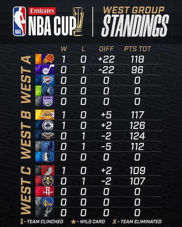 LA CLASSIFICA DELLA NBA CUP A OVEST