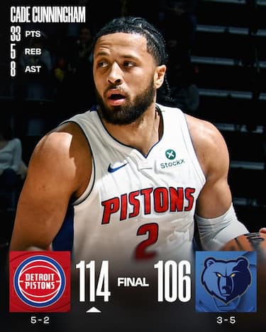 Cade Cunningham segna 19 dei suoi 33 punti nel quarto periodo, Isaiah Stewart firma il suo massimo in carriera da 26 punti e i Pistons tengono a bada i tentativi di rimonta dei Grizzlies, scivolati anche a -21 in una gara in cui non sono mai stati in vantaggio. Ja Morant torna in campo dopo una gara di sospensione e chiude con 18 punti e 10 assist, secondo miglior realizzatore alle spalle dei 21 di Jaren Jackson Jr.