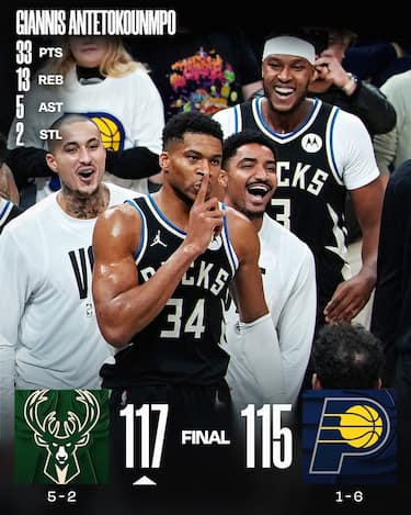 Nella serata del primo ritorno di Myles Turner da avversario in casa dei Pacers (9 punti, 7 rimbalzi e 5 stoppate), a prendersi tutte le luci della ribalta è Giannis Antetokounmpo, che suggella una serata da 33 punti e 13 rimbalzi con il canestro dalla media distanza sulla sirena per vincere la partita. Ai vice-campioni NBA non bastano i 32 punti di Pascal Siakam, vedendo sfumare la loro rimonta da -11 negli ultimi 6 minuti di partita