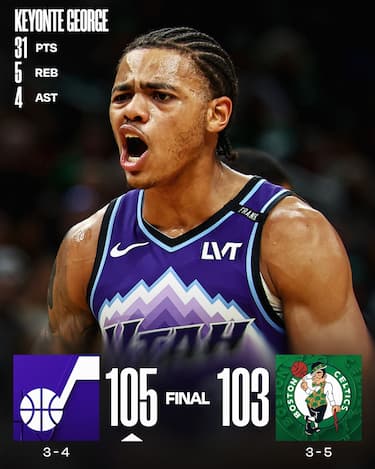 Un canestro a rimbalzo offensivo di Jusuf Nurkic a 6 decimi dalla fine permette ai Jazz di suggellare una rimonta partita da -11 nel secondo tempo e di sbancare il TD Garden. Grande protagonista Keyonte George con 31 punti per interrompere una striscia di tre sconfitte in fila, mentre i Celtics non vanno oltre i 36 di Jaylen Brown (ma con 0/9 da tre in una serata da 11/51 di squadra)