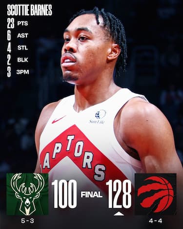 Continua la corsa dei sorprendenti Raptors, che dopo aver iniziato in salita la loro stagione colgono la terza vittoria consecutiva battendo nettamente Milwaukee. R.J. Barrett e Scottie Barnes segnano 23 punti a testa e la panchina di Toronto contribuisce con 46 punti, dall’altra parte arriva una serata ‘normale’ di Giannis Antetokounmpo (22 punti e 8 rimbalzi) e i Bucks affondano soprattutto a causa del pessimo 11/38 dalla lunga distanza di squadra