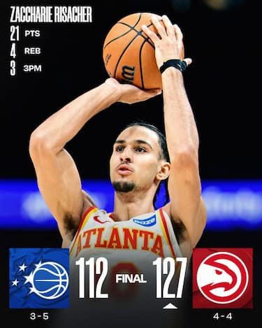 Ancora senza la sua stella Trae Young, Atlanta ottiene una convincente vittoria dominando i Magic fin dall’inizio sulle spalle delle buone prove di Zaccharie Risacher (21 punti) e Nickeil Walker-Alexander (20). Orlando gioca invece una partita priva di energia e la tripla doppia sfiorata da Paolo Banchero (22 punti, 11 rimbalzi e 8 assist) serve davvero a poco per una squadra che conferma i limiti già emersi in questo avvio di stagione