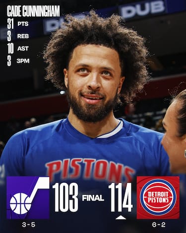 Quarta vittoria consecutiva per Detroit, che in casa contro Utah cambia marcia nel 3° quarto, dove concede agli avversari la miseria di 14 punti, e grazie alle doppie doppie di Cade Cunningham (31 punti e 10 assist) e Jalen Duren(22 punti e 22 rimbalzi) supera i Jazz senza troppi problemi