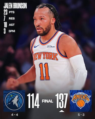 Ai Timberwolves non basta il rientro di Anthony Edwards, che segna 15 punti in 29 minuti giocati, perché New Yorkmette in scena un secondo tempo di grande intensità e sulle spalle di OG Anunoby (25 punti) e Jalen Brunson (23 con anche 10 assist) superano anche la prova dell’ex di serata Julius Randle, migliore in campo con 32 punti
