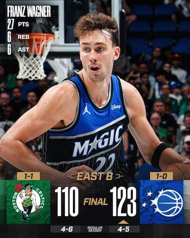 Ai Magic occorre un doppio sforzo per battere Boston, perché i padroni di casa vanno avanti subito anche in doppia cifra già nel 1° quarto, ma i Celtics rimontano e rientrano in gara e allora Orlando deve riprendersi il vantaggio nell’ultimo parziale. A essere protagonisti sono Franz Wagner (27 punti) e Desmond Bane (22), mentre dall’altra parte non bastano i 32 punti con anche 9 rimbalzi di Jaylen Brown