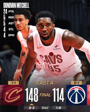Tutto come da previsioni a Washington, dove la differenza tra le due squadre emerge già dai primi possessi, in cui Cleveland scappa subito per poi mantenere e anzi incrementare il proprio vantaggio nel resto della partita. I Cavsmandano ben otto giocatori in doppia cifra, mentre per gli Wizards il veterano CJ McCollum (25 punti) sembra l’unico animato dalla voglia di provare almeno a impensierire gli avversari