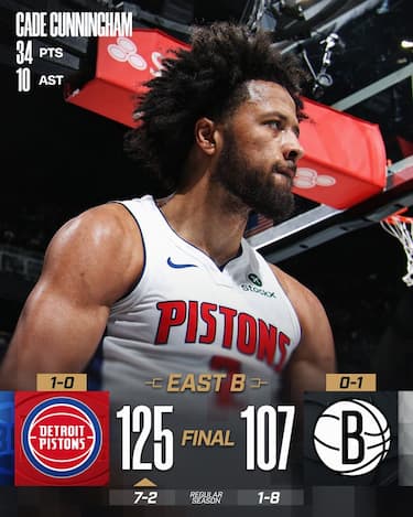 Quinta vittoria consecutiva per i lanciatissimi Pistons, che a Brooklyn cambiano passo dopo l’intervallo lungo e sulle spalle di Cade Cunningham (34 punti e 10 assist) e Jalen Duren (30 punti e 11 rimbalzi) hanno la meglio sui Nets. Altra buona prova da 28 punti e 8/17 al tiro per Michael Porter Jr., che però si traduce in un’altra sconfitta perBrooklyn