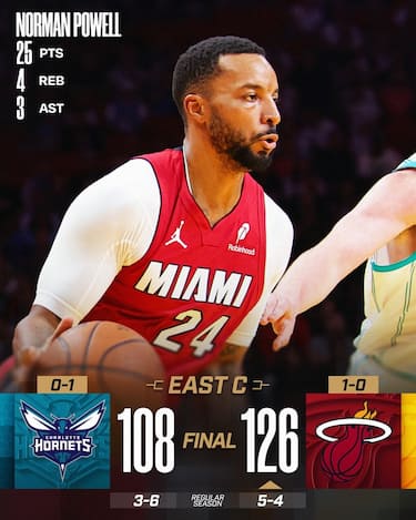 Dimostrazione di forza da parte degli Heat, che segnano un record di franchigia mettendo a tabellino 53 punti nel solo 1° quarto e gestiscono nel resto della partita con Norman Powell (25 punti) e Andrew Wiggins (22) come protagonisti principali. Altra buona prova per Simone Fontecchio, che come d’abitudine entra dalla panchina e in 19 minuticontribuisce con 11 punti, 2 rimbalzi e 2 assist. Charlotte si può invece in parte consolare con i 30 punti del rookie Kon Knueppel