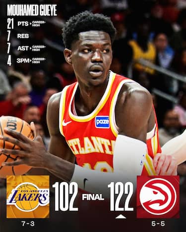 Dopo cinque vittorie consecutive si interrompe il momento positivo dei Lakers, battuti nettamente dagli Hawks privi di tre titolari (Trae Young, Jalen Johnson e Kristaps Porzingis tutti fuori). I padroni di casa ci mettono il doppio dell’energia guidati dai 21 punti (career-high) di Mouhamed Gueye e travolgono i gialloviola, toccando anche il +30 nel corso del match e costringendo coach JJ Redick a togliere Luka Doncic a metà terzo quarto (17 punti, 5 rimbalzi e 11 assist in meno di 27 minuti)