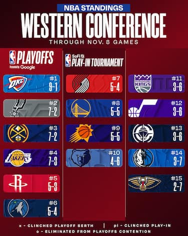 San Antonio e Denver approfittano del ko dei Lakers per salire alle spalle di OKC, mentre Phoenix si porta al 50% di vittorie in zona play-in, infliggendo ai Clippers il quarto ko consecutivo. Dallas lascia l’ultimo posto dove ora c’è solo New Orleans