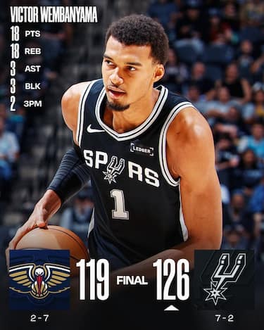De’Aaron Fox festeggia il suo debutto stagionale realizzando 24 punti, seguito dalle doppie doppie di Victor Wembanyama (18 punti e 18 rimbalzi) e di Steph Castle (14 con 14 assist) per il secondo successo in fila dei nero-argento. Agli ospiti, sempre privi di Zion Williamson e Jordan Poole, non bastano i 41 punti di un infuocato Trey Murphy III (15/22 dal campo di cui 5/11 da tre) e i 18 del rookie Jeremiah Fears