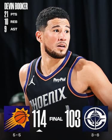 I Suns battono i Clippers per la seconda volta nel giro di tre giorni, ritrovando il successo in trasferta dopo 12 sconfitte in fila considerando anche la passata stagione. Devin Booker va a un assist dalla tripla doppia (21-10-9) e può contare su altri cinque compagni in doppia cifra, tra cui anche i 16 del rientrante Dillon Brooks. La partita di Jalen Green invece dura solo 7 minuti per un riacutizzarsi del problema al bicipite femorale che lo aveva tenuto fuori nelle ultime settimane, ma i Suns hanno comunque la meglio sulle doppie doppie di Ivica Zubac (21 e 15 rimbalzi) e James Harden (13 con 13 assist)