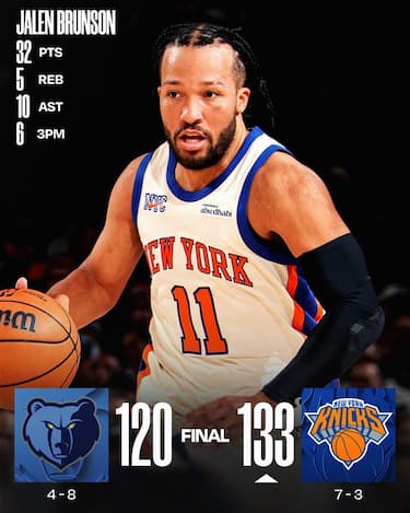 Tutto facile per i Knicks, che, come da pronostico, battono Memphis ottenendo la loro 5^ vittoria consecutiva e mantenendo l’imbattibilità in casa in questa stagione. New York trova la doppia doppia da 32 punti e 10 assist di un ispirato Jalen Brunson, che tira anche 6/9 dalla lunga distanza, e mette le mani sulla partita già nel primo tempo. I Grizzlies, dall’altra parte, pagano soprattutto le 22 palle perse e l’ennesima serata complicata di Ja Morant, che va in doppia doppia con 16 punti e 10 assist ma tira 4/14 dal campo e da solo perde ben 6 palloni