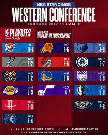 Non si arresta la corsa solitaria dei Thunder, sempre primi a Ovest, mentre Denver aggancia San Antonio al secondo posto e i Grizzlies scivolano sempre più in basso