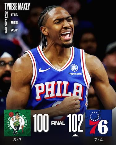 È un canestro di Kelly Oubre Jr. (12 punti e 7 rimbalzi), bravissimo a correggere l’errore al tiro di un Justin Edwardsfin lì scatenato e protagonista della rimonta dei suoi con 22 punti e 5 triple, a regalare ai Sixers il vantaggio che si rivelerà poi decisivo a 8.7 secondi dalla fine. Prima Derrick White (18 punti e 7 assist) e poi Neemias Queta (8 punti e 10 rimbalzi) hanno infatti la possibilità di vincere la partita o quantomeno mandare tutti al supplementare, ma i loro tentativi non vanno a bersaglio e Boston perde nonostante i 24 punti di Jaylen Brown