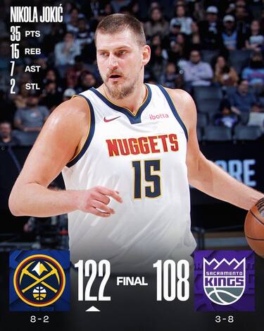 Basta un’accelerata nel 4° quarto ai Nuggets per passare a Sacramento. Serata di consueto dominio per Nikola Jokic, che chiude con 35 punti, 15 rimbalzi e 7 assist tirando con un eccezionale 16/19 dal campo e in uscita dalla panchinaDenver trova anche 14 punti da Bruce Brown e 10 con 7 rimbalzi dall’ex della partita Jonas Valanciunas. I Kings giocano una buona gara fino al crollo nell’ultimo parziale, e l’altro ex di serata Russell Westbrook regala una prestazione alla Russell Wesbrook con 14 punti, 11 assist e 8 rimbalzi ma solo 3/12 al tiro