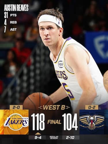 Seconda vittoria su due in NBA Cup anche per i Lakers, che si godono le ottime prestazioni di Luka Doncic (24 punti e 12 assist), Austin Reaves (31) e Deandre Ayton (20+16 con 10/11 al tiro) per avere ragione dei Pelicans. I 35 punti di Trey Murphy III non bastano per evitare la quarta sconfitta consecutiva, finendo a -22 in apertura di ripresa e tornando al massimo fino a -8 nel quarto periodo, ma senza impensierire davvero i gialloviola