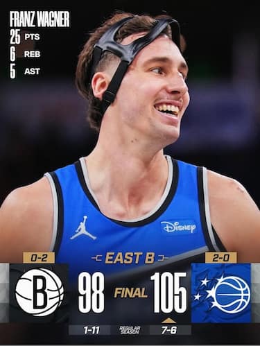 I Magic, privi di Paolo Banchero, devono dare fondo alla loro difesa per avere ragione dei Nets, arrivati a +4 a 2:37 dalla fine. Da lì in poi però un parziale di 11-0 chiude i conti in favore dei padroni di casa, guidati dai 25 punti di Franz Wagner e dai 22 con 9 rimbalzi di Tristan Da Silva per rispondere ai 24 di Michael Porter Jr. Per Orlando è la seconda vittoria in NBA Cup, mentre Brooklyn perde la seconda su due