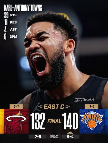 In assenza di Jalen Brunson, fermato da una distorsione alla caviglia, il resto dei Knicks sale di livello, a partire dall’altra stella Karl-Anthony Towns (39 punti) e dal miglior Landry Shamet della carriera (36 uscendo dalla panchina). Al massimo stagionale dei padroni di casa contribuiscono anche i 25 punti di Jordan Clarkson e la prima tripla doppia stagionale di Josh Hart (12 punti, 12 rimbalzi e 10 assist), sopperendo anche all’assenza di OG Anunoby uscito dopo due minuti per un infortunio al bicipite femorale. Agli Heat non bastano i 38 punti (massimo stagionale) di Norman Powell, mentre Simone Fontecchio si ferma a 9 punti con 3/7 dall’arco in poco meno di 15 minuti