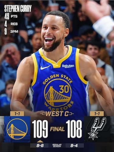 Dopo quella di due giorni fa, Spurs e Warriors danno vita ad un’altra partita intensa e combattuta, risolta ancora una volta da uno strepitoso Steph Curry. Il due volte MVP, dopo i 46 dell’ultimo match tra le due squadre, fa addirittura meglio mettendone 49, tra cui i due tiri liberi del sorpasso a 6 secondi dalla fine prima dell’ultimo errore di De’Aaron Fox sulla sirena. Victor Wembanyama dà vita a una battaglia serratissima con Draymond Green e chiude con 26 punti e 12 rimbalzi, seguito dai 24 con 10 assist di De’Aaron Fox a cui è però mancato il canestro clutch per la vittoria