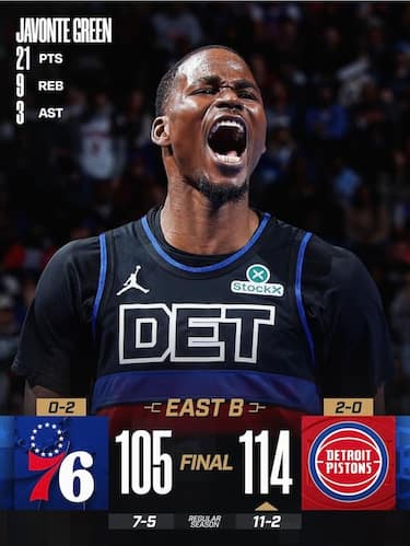 Non si ferma più la marcia dei Pistons, che conquistano la nona vittoria consecutiva (non accadeva dal 2008) pur dovendo fare a meno di quattro titolari come Cade Cunningham, Tobias Harris, Ausar Thompson e Jalen Duren. I padroni di casa cambiano marcia nell’ultimo quarto vinto 26-15, propiziato da un canestro da metà campo sulla sirena del terzo quarto di Daniss Jenkins, autore di 19 punti dietro solo ai 21 di Javonte Green. Ai Sixers, privi di Joel Embiid, non bastano i 31 di Tyrese Maxey lasciato troppo solo dai compagni nel finale di partita