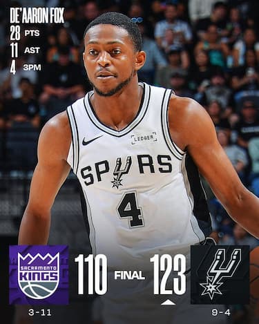 Anche senza Victor Wembanyama, fermato da un problema al polpaccio sinistro, gli Spurs hanno ragione dei Kings tornando a vincere dopo le due sconfitte in fila contro Golden State. De’Aaron Fox contro la sua ex squadra firma il suo massimo stagionale da 28 punti e 11 assist, sopperendo anche all’infortunio di Stephon Castle che esce dopo 15 minuti per un problema all’anca. Agli ospiti non bastano i 27 di DeMar DeRozan, altro ex della sfida, per evitare la sesta sconfitta consecutiva