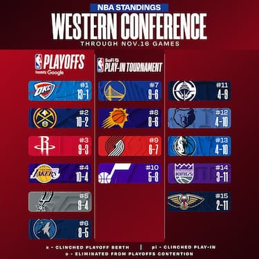 Houston prova a tenere il passo di OKC e Denver in vetta alla classifica, così come San Antonio che è quinta. Golden State risale al settimo posto approfittando dei ko di Phoenix e Portland, mentre al decimo ci sono un po’ a sorpresa i Jazz