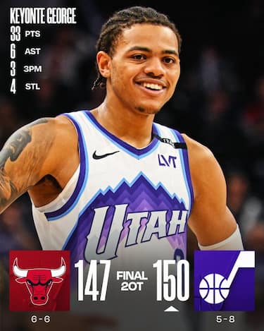 Nella notte degli overtime se ne giocano ben due a Salt Lake City, dove i Jazz riescono ad avere la meglio dei Bulls nella partita col punteggio più alto della stagione. Keyonte George è decisivo con 33 punti di cui 6 nel secondo overtime, dove segna anche la tripla a 2 secondi dalla fine per spezzare la parità, ma a prendersi le copertine sono i 47 punti dell’ex Lauri Markkanen, decisivo per infliggere a Chicago la quinta sconfitta consecutiva. L’esordio stagionale di Coby White (27 punti) e la tripla doppia di Josh Giddey (26 punti, 12 rimbalzi e 13 assist) non bastano ai Bulls, che falliscono la tripla della parità con Nikola Vucevic sulla sirena