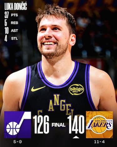 C’è anche LeBron James, finalmente pronto per il suo debutto stagionale e subito in doppia doppia con 11 punti e 12 assist in meno di 30 minuti giocati, nella netta vittoria dei Lakers, che dopo l’intervallo lungo alzano l’intensità in entrambe le metà campo e travolgono i Jazz. Luka Doncic chiude con 37 punti e 10 assist, Austin Reaves aggiunge 26 punti e anche Deandre Ayton va in doppia doppia con 20 punti e 14 rimbalzi, mentre Utah può consolarsi con la coppia formata da Keyonte George e Lauri Markkanen, autori di 33 e 31 punti che però non spostano di molto l’ago della bilancia della gara