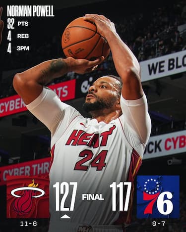 Quarto successo consecutivo per gli Heat, che passano a Philadelphia grazie alle ottime prestazioni di Norman Powell (32 punti), Kel’el Ware (20+16 rimbalzi) e Jaime Jaquez (22), scappando via con un parziale di 13-2 nel quarto periodo quando gli avversari si erano riportati fino al -2. Sono sei i punti di un Simone Fontecchio ancora impreciso al tiro (2/8 dal campo di cui 2/7 dalla lunga distanza, insieme a 3 rimbalzi e 2 assist in 18 minuti), mentre ai padroni di casa non bastano i 27 di Tyrese Maxey e la doppia doppia da 14+24 di Andre Drummond per sopperire alle assenze di Joel Embiid (settima gara consecutiva saltata) e VJ Edgecombe