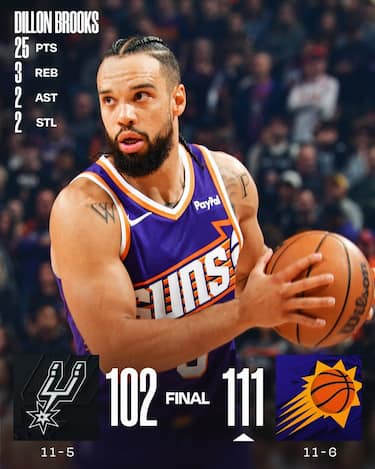 La terza vittoria consecutiva dei Suns ferma la striscia di tre successi in fila degli Spurs, che sempre privi di Wembanyama, Castle e Harper non vanno oltre i 26 punti di De’Aaron Fox sul campo di Phoenix. I padroni di casa invece hanno 25 punti da parte di Dillon Brooks e 24 di Devin Booker per sopperire alle assenze di Jalen Green, Grayson Allen e Ryan Dunn, ringraziando anche le doppie doppie di Jordan Goodwin (15+10 rimbalzi) e Mark Williams (14+11) per trovare l’accelerazione giusta da metà terzo quarto in poi, rimanendo sempre avanti nel finale di gara