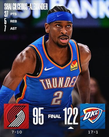 I campioni in carica vendicano l’unica sconfitta subita fino a questo momento in stagione, toccando anche il +36 contro i Blazers con uno scintillante Shai Gilgeous-Alexander. L’MVP ne segna 37 negli ormai canonici tre quarti di gioco per ispirare la nona vittoria consecutiva dei suoi, che hanno anche 20 punti da un perfetto Ajay Mitchell (8/8 al tiro) e mandano a referto ben 12 giocatori diversi. Agli ospiti, privi di Jrue Holiday e Shaedon Sharpe, non bastano i 21 di Jerami Grant per resistere all’urto della miglior squadra NBA
