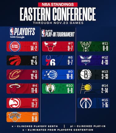 Toronto continua a tenere il passo di Detroit, così come fanno Cleveland, Miami e Atlanta tutte in striscia positiva. Boston si tiene stretta il decimo posto, provando ad avvicinarsi a Orlando e Philadelphia sopra di lei