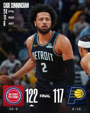 Non si ferma la marcia dei Pistons, che capitalizzano su un grande primo tempo (71-55) e resistono alla rimonta dei Pacers, che si fermano a -2 dopo essere stati sotto anche di 18 lunghezze nel quarto periodo. Per Cade Cunningham (24 punti e 11 rimbalzi) e compagni è la 13^ vittoria consecutiva, pareggiando il record di franchigia realizzato nel 1989-90 e nel 2003-04, quando entrambe le squadre vinsero poi il titolo NBA. Ai Pacers, ko in 10 delle ultime 11 partite, non bastano i 24 punti di Pascal SIakam e i 21 di Jerace Walker