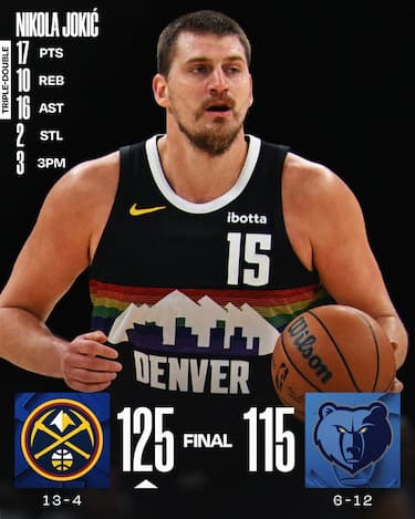 Nonostante gli infortuni pesanti di Braun e Gordon, Denver conquista la terza vittoria nelle ultime quattro resistendo alla rimonta dei Grizzlies, rientrati dal -17 al -6 ma ricacciati indietro dalle giocate di Jamal Murray (29 punti e 8 assist) e Payton Watson (27), oltre al solito Nikola Jokic. Il tre volte MVP firma la sua decima tripla doppia stagionale da 17 punti, 10 rimbalzi e 16 assist, rendendo inutili 26+10 di Jock Landale e i 22 di Jaylen Wells per i padroni di casa sempre privi di Ja Morant