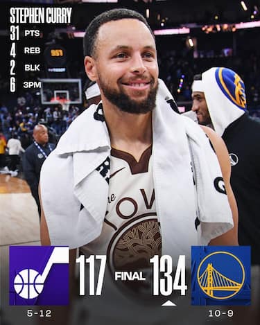 La quinta partita da 30+ punti di Steph Curry nelle ultime sei (31 punti e 6 triple a segno) basta agli Warriors per avere ragione dei Jazz, ringraziando anche i 18 di Jimmy Butler e i 15 di Moses Moody. Dopo aver chiuso il primo quarto sotto di 9 lunghezze, Golden State cambia marcia nei due quarti centrali realizzando 80 punti contro i 49 degli ospiti, gestendo poi il punteggio nel finale. Per i Jazz si tratta del quarto ko consecutivo, arrivato nonostante i 28 punti di Keyonte George e perdendo per la quinta volta su cinque in trasferta contro un’avversaria della Western Conference