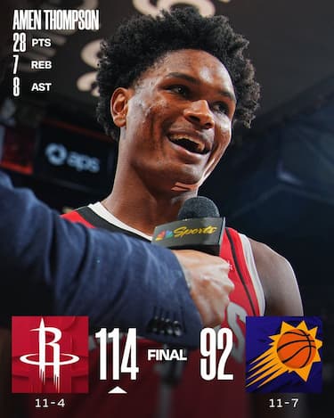 Anche senza Kevin Durant, assente per motivi familiari, i Rockets passano facilmente sul campo dei Suns interrompendo la loro striscia di tre vittorie in fila. Amen Thompson con 28 punti e Aaron Holiday con 22 guidano i texani all’11° successo nelle ultime 13 partite, ma è soprattutto la difesa a tenere Phoenix al minimo stagionale con il 41% dal campo e ben 20 palle perse che fruttano 26 punti ai Rockets, dominanti anche nel pitturato (54-30) e in contropiede (18-4). In questo modo neanche l’ex Dillon Brooks riesce a lasciare il segno nonostante i suoi 29 punti, accompagnato dai 18 di Devin Booker e i 16 di Collin Gillespie