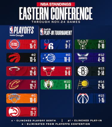 Detroit continua a fare corsa di testa, ma Toronto è solo a 2.5 partite di distanza tallonata da Miami. Cleveland perde terreno ed è ora insidiata da New York e Atlanta per il quarto posto, mentre c’è solo mezza gara di distanza tra le quattro squadre in zona play-in. Milwaukee continua a scivolare indietro