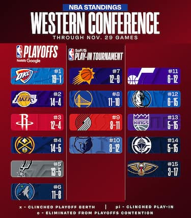 Denver rimane attaccata al gruppetto delle inseguitrici dell’imprendibile OKC, mentre Phoenix lascia il sesto posto in favore di Minnesota e deve ora guardarsi le spalle da Golden State. Nella parte bassa invece Dallas con questo successo sale al 12° posto, mentre i Clippers sprofondano al 14° davanti solamente a New Orleans