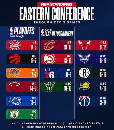 Lo stop di Detroit permette a New York di avvicinarsi a 2.5 gare di distanza dalla vetta, mentre Miami e Orlando devono guardarsi le spalle da Boston, che supera Cleveland e Atlanta in classifica e sale al sesto posto. Milwaukee ritrova un posto al play-in ai danni dei Bulls