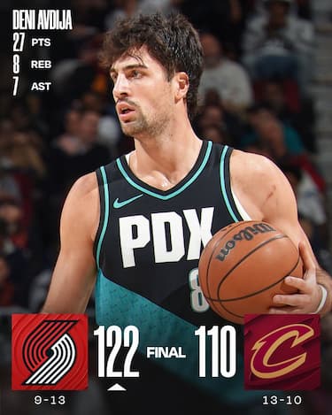 I Blazers tornano a vincere dopo tre sconfitte in fila, passando sul campo dei Cavs che hanno più di qualche domanda da farsi. Deni Avdija segna 27 punti e sia Caleb Love che Shaedon Sharpe ne aggiungono 20 a testa, cambiando passo nel quarto periodo grazie a 10 punti in fila dei 17 finali di Toumani Camara. Ai Cavs, sconfitti in quattro delle ultime cinque partite e ko per la prima volta in stagione contro una squadra sotto al 50% di vittorie, non bastano i 33 del solito eccellente Donovan Mitchell
